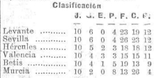 Imagen 1. Clasificación final del grupo Levantino-Andaluz del Campeonato Superregional 1934.