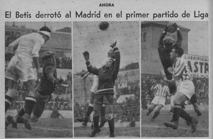 El diario AS titula “Al comenzar la Liga el Madrid pierde en 1934…como perdió en 1933” y publica un amplio reportaje fotográfico que recoge entre otras la foto del portero y la defensa bética. También el diario Ahora recoge 3 instantáneas.