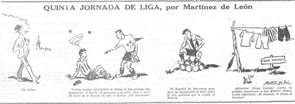 Imagen 2. Chiste gráfico de Martínez de León, después de la 5ª Jornada de la Liga 1934-35. Diario La Voz. Biblioteca Nacional de España.