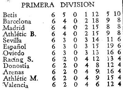 Imagen 3. Clasificación de la Liga 1934-35 tras 6 partidos disputados.