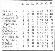 Imagen 3. Clasificación de la Liga 1934-35 tras 8 partidos disputados.