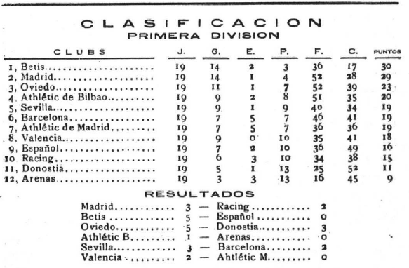 Liga 1934-35. Jornada 19. Betis 5 - Español 0