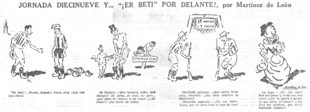 Imagen 1.- Martínez de León en el periódico La Voz, muestra la goleada del Betis y lo cerca que está la Liga. Biblioteca Nacional de España.